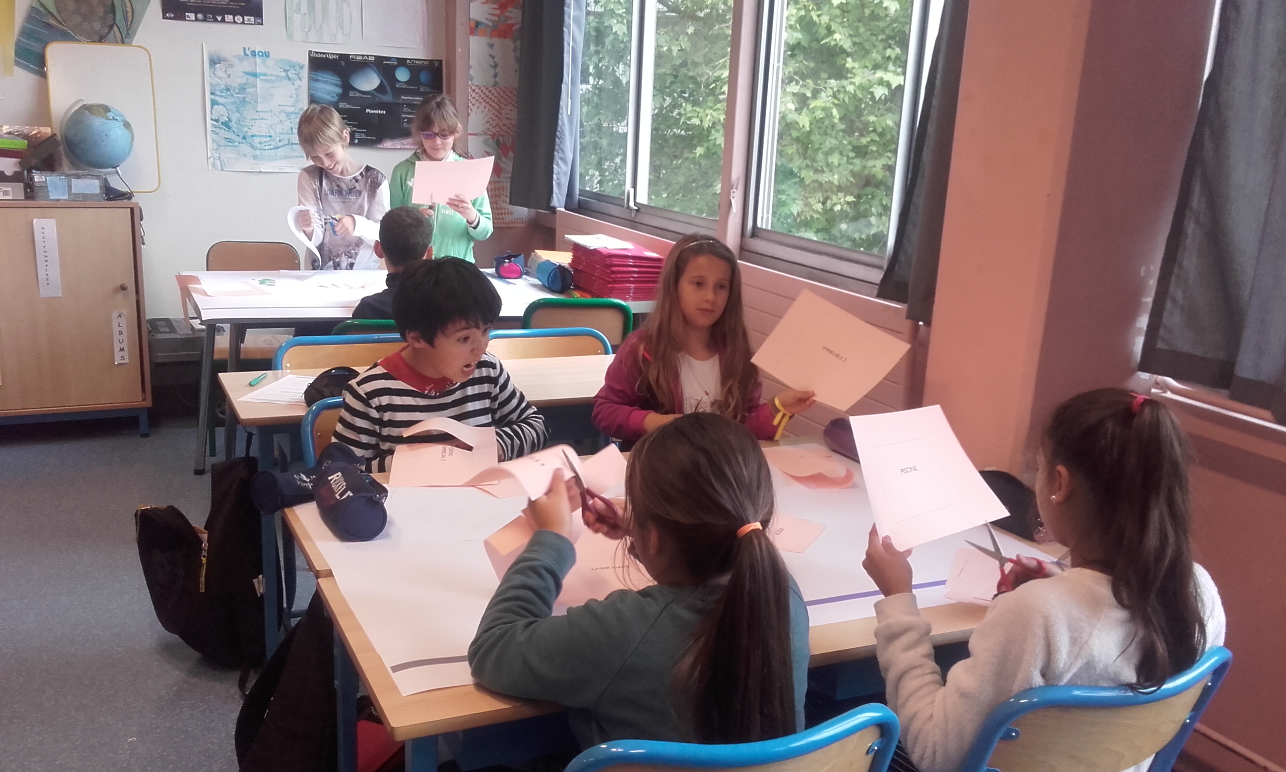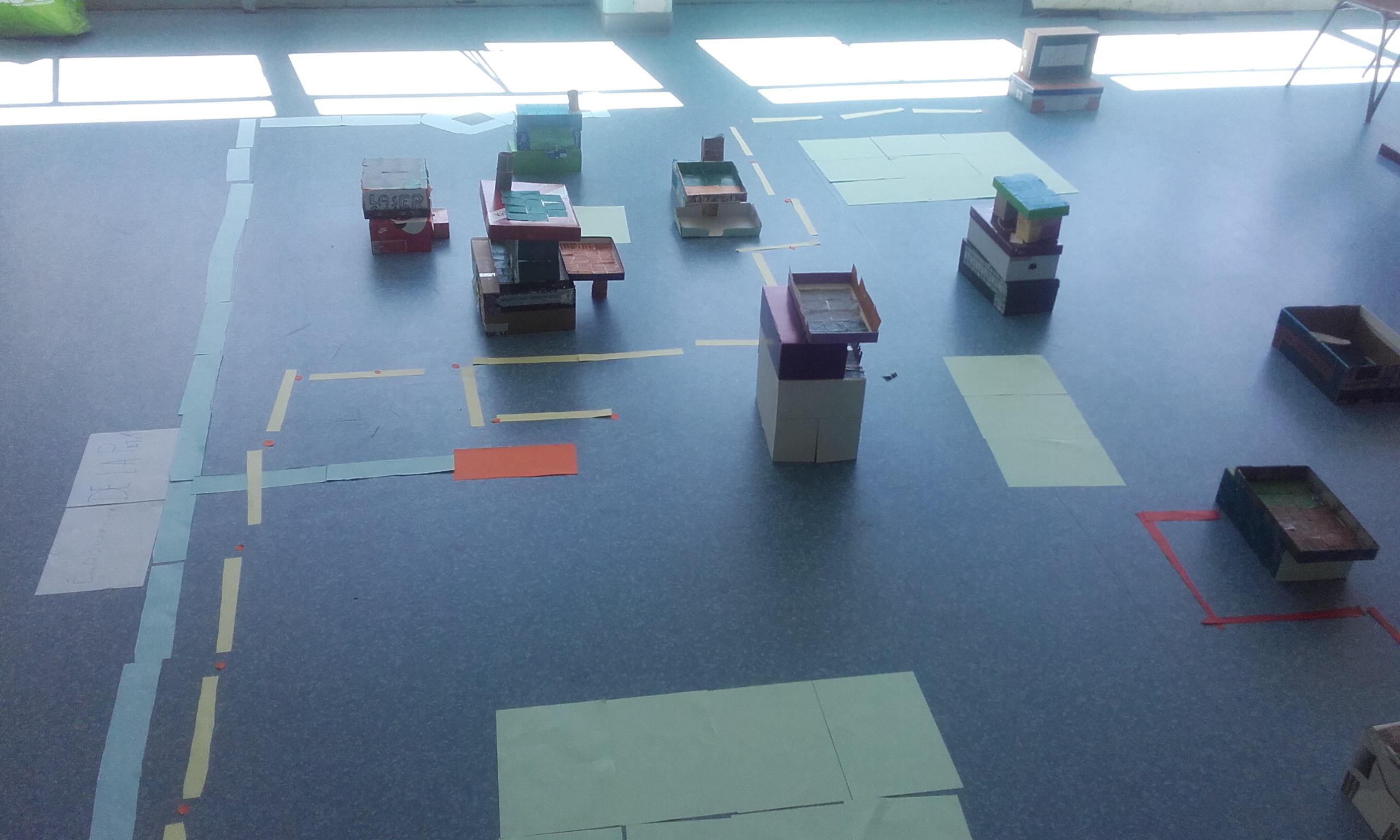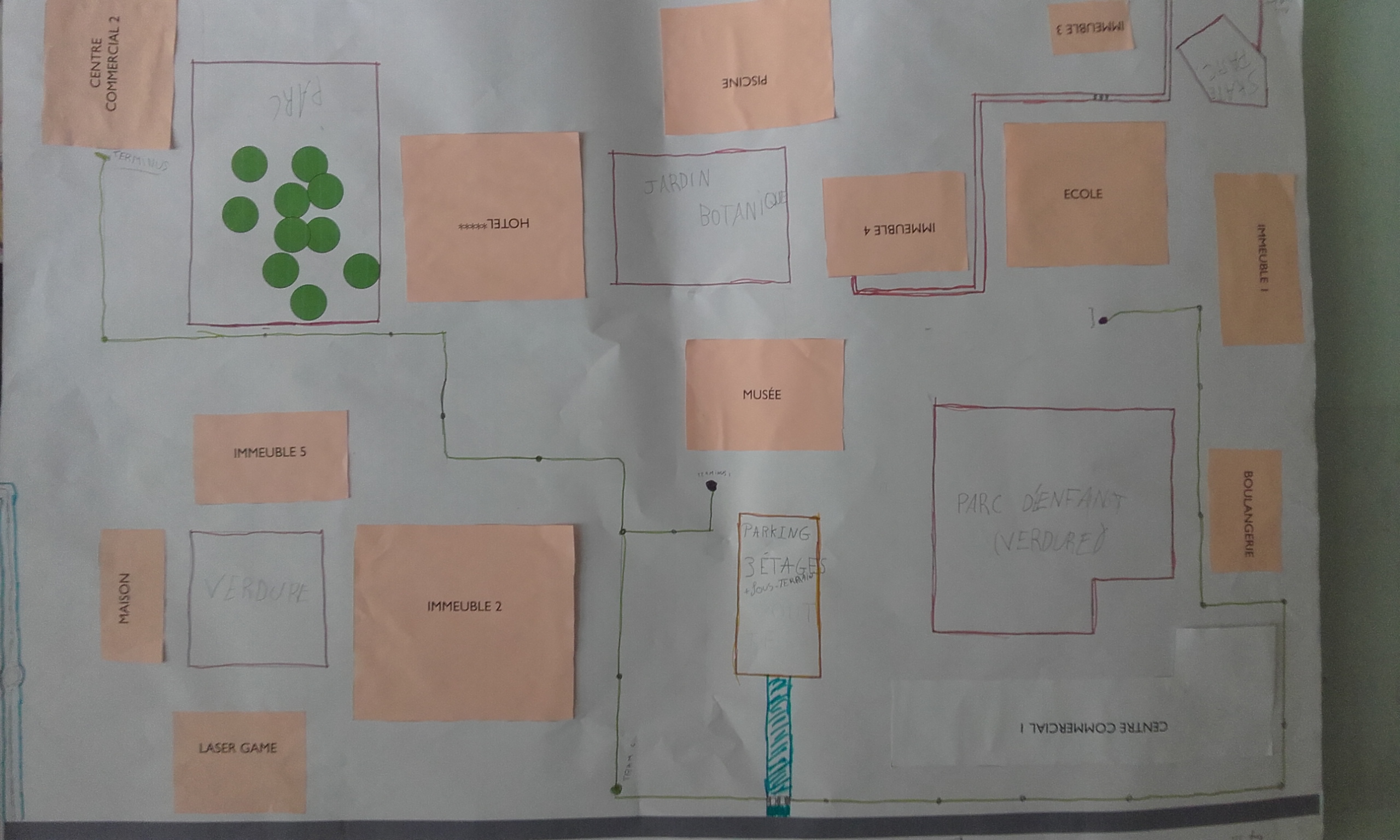 Nous sommes montés au 3ème étage de l'école pour disposer nos maquettes et pour faire notre propre éco-quartier. Quelques-uns ont fabriqué des routes et des parcs.