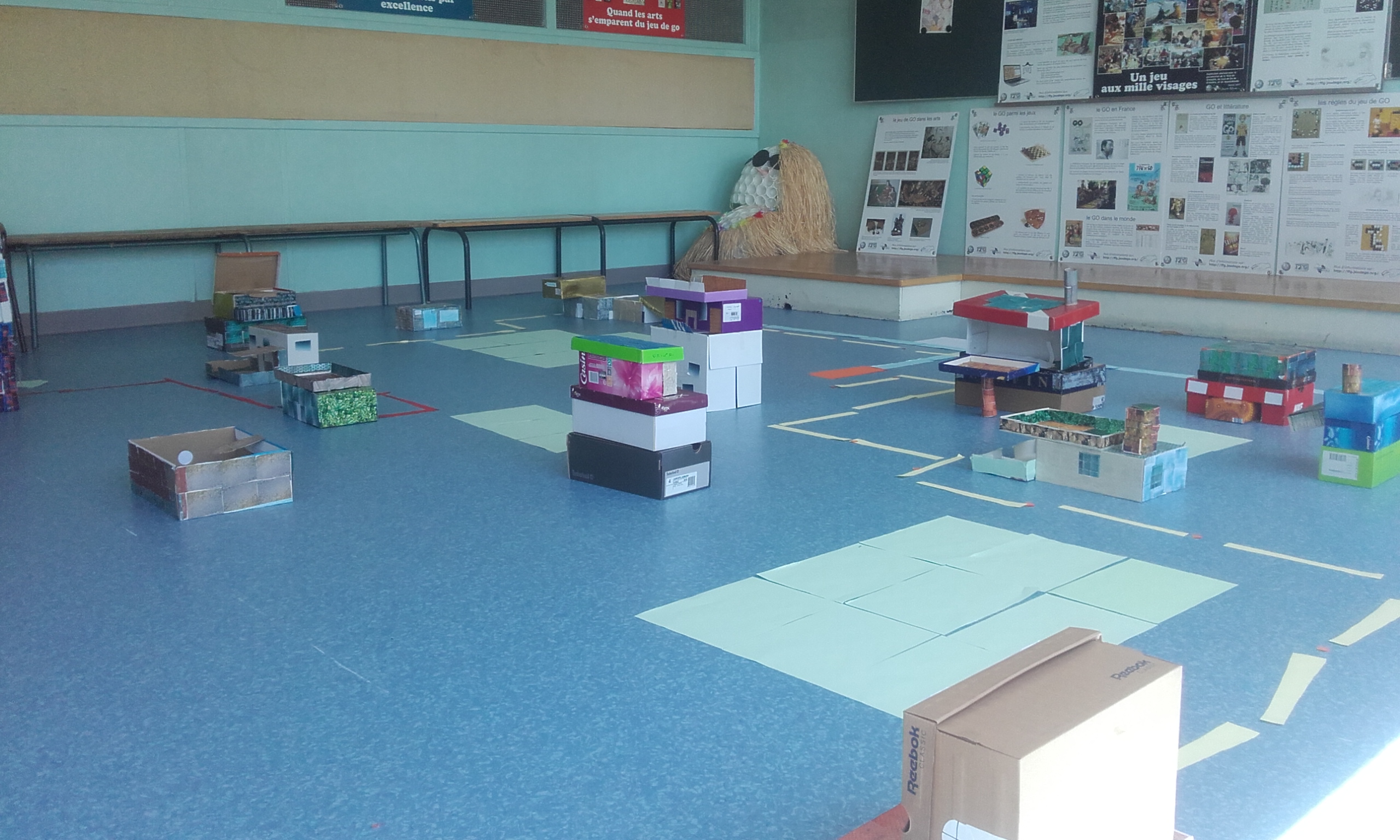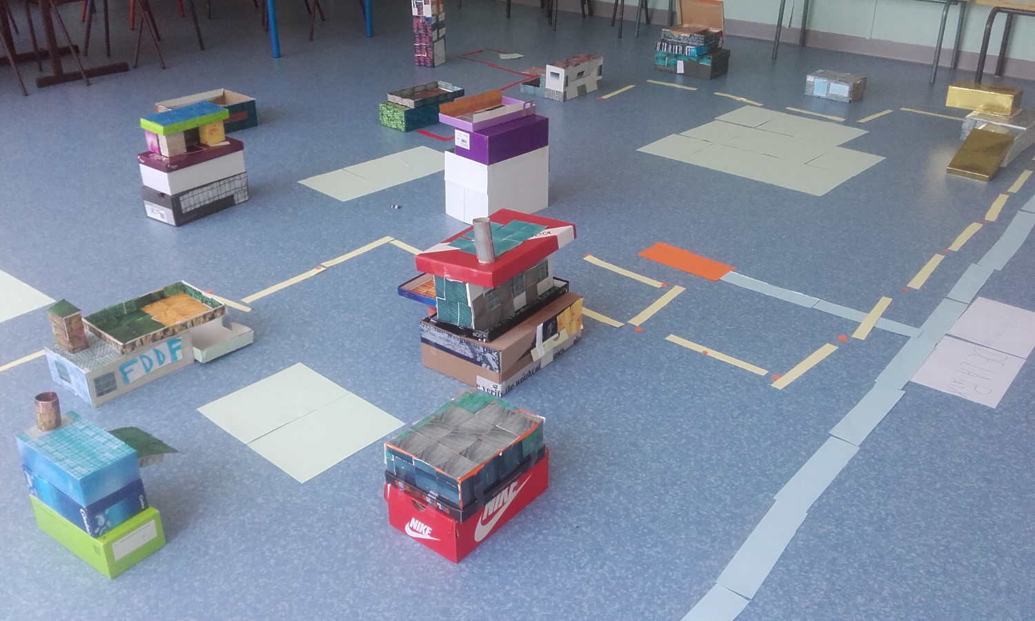 Pour notre troisième séance, nous sommes restés en classe et nous avons fait des maquettes de bâtiments avec des boîtes en carton. Nous nous sommes transformés en architecte.