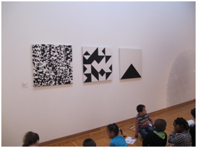 On obtient ainsi des tons plus ou moins foncés ou plus ou moins clairs. Nous avons été dans une salle dédiée à monsieur Morellet. Nous avons étudié trois de ses tableaux, sur lesquels il fallait retrouver un triangle de plus en plus petits.