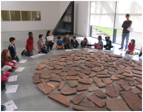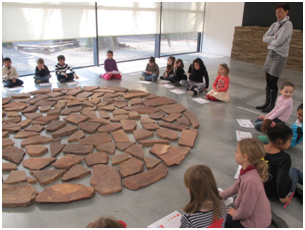 Nous avons terminé la visite par une œuvre de Richard Long. Il s’agit de Land Art. il a mis des pierres ensemble pour former un cercle, à l’intérieur, il y a un espace entre toutes les pierres. C’est une œuvre éphémère, les artistes les font dans la nature, ils prennent la photographie puis ils s’en vont.