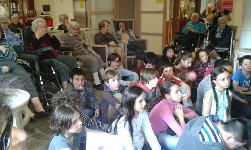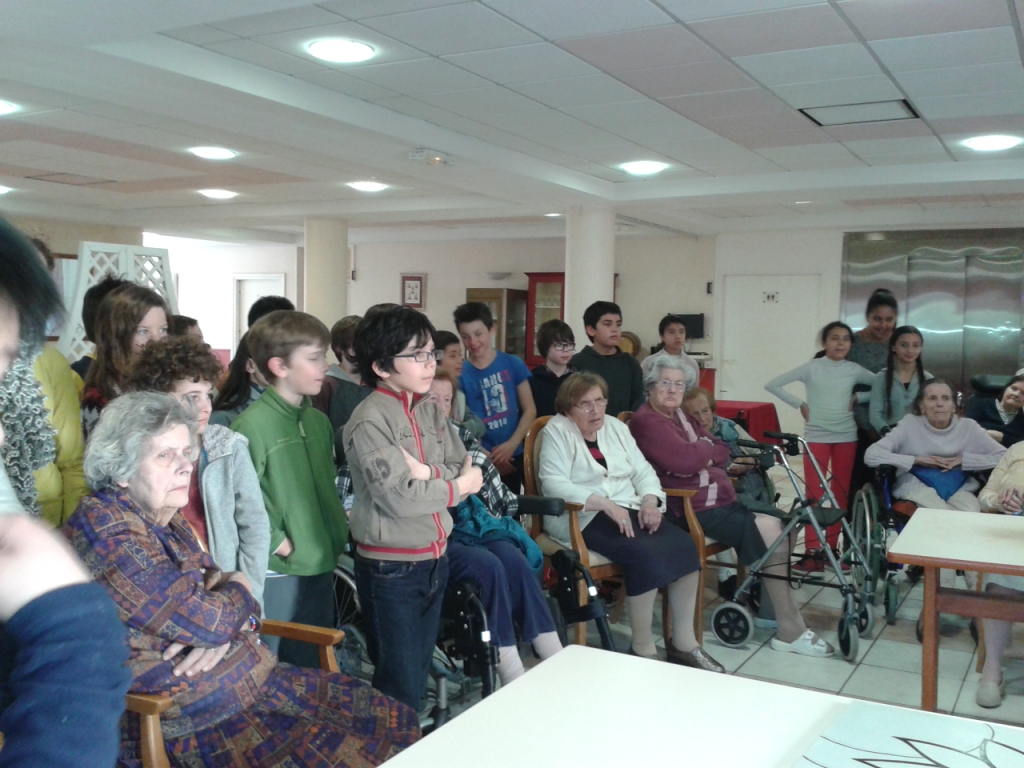 Il était une fois une classe de CM2 de l'école Bizanet qui allait rendre visite à des personnes âgées dans une maison de retraite à l'Isle Verte. Elles accueillaient les joyeux enfants avec un grand sourire!