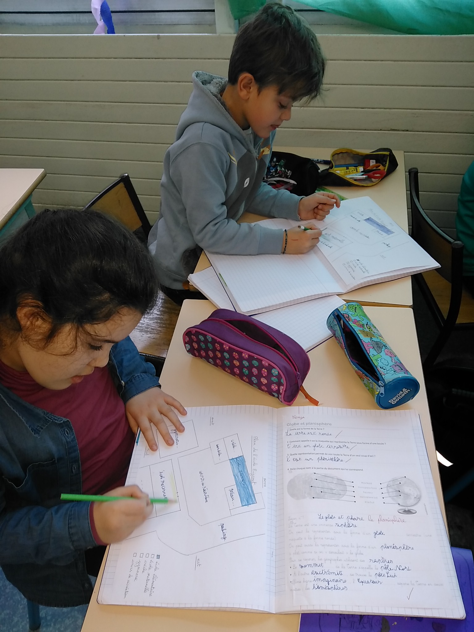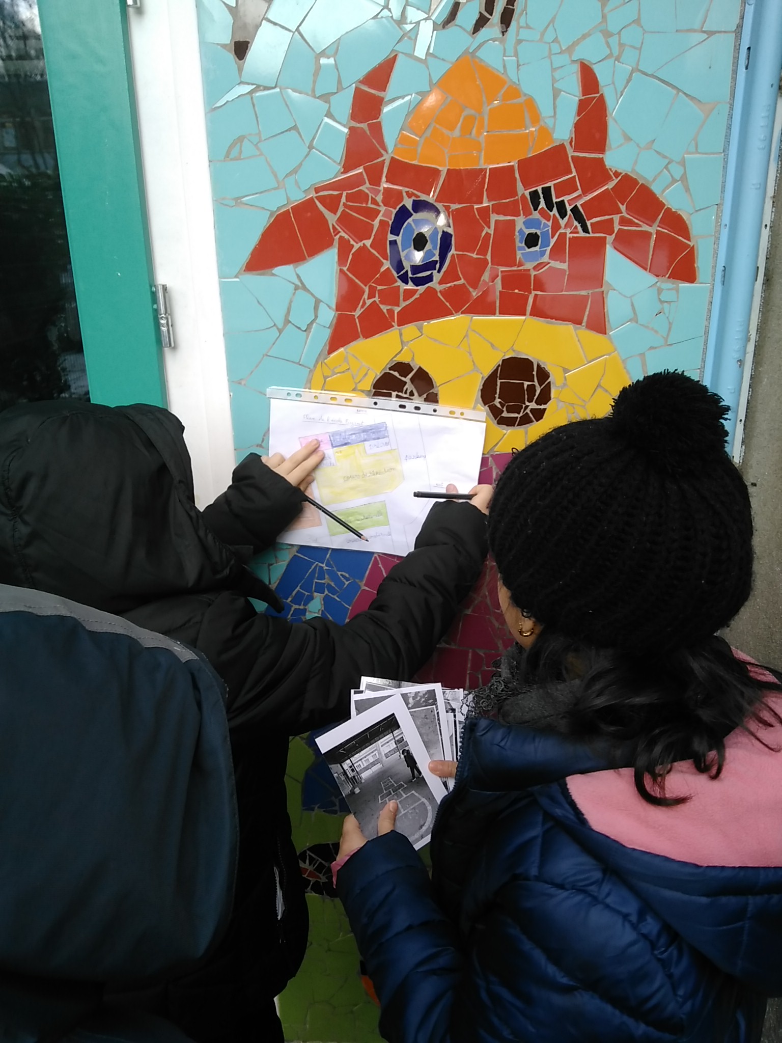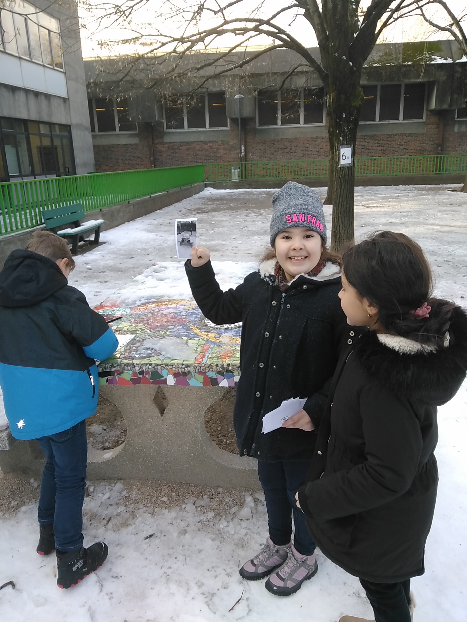 Il fallait retrouver les photos de la cour et les situer sur le plan de l'école.