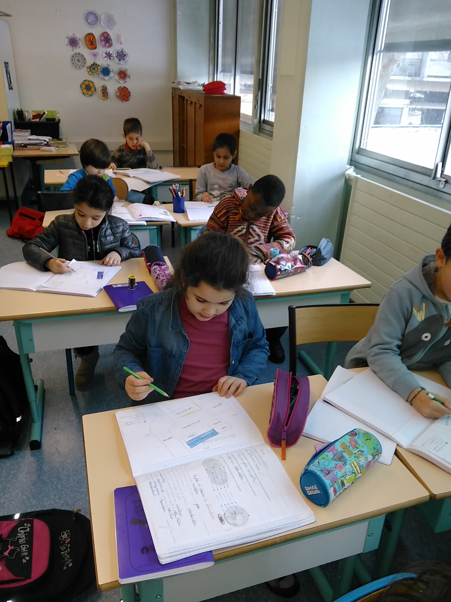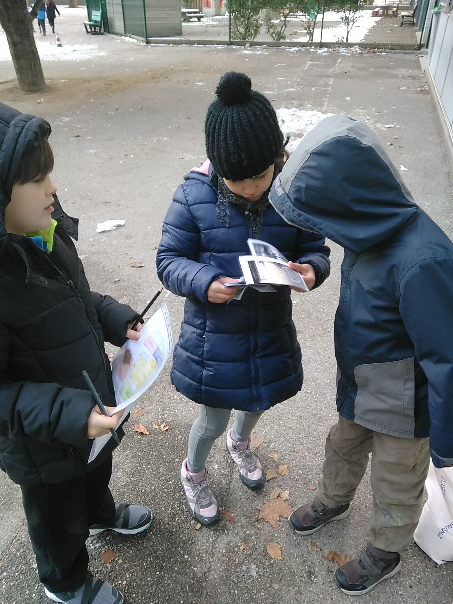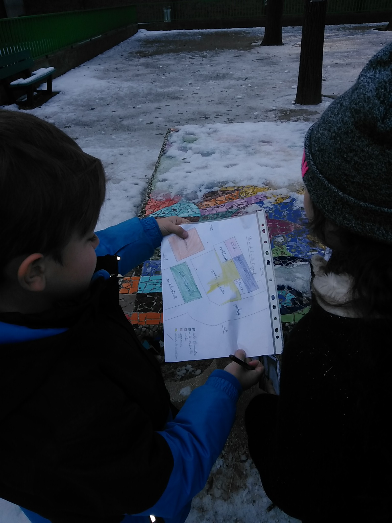 Nous avons travaillé sur le plan de l'école avec les CE1. Nous avons fait un rallye-photo dans la cour de récréation.