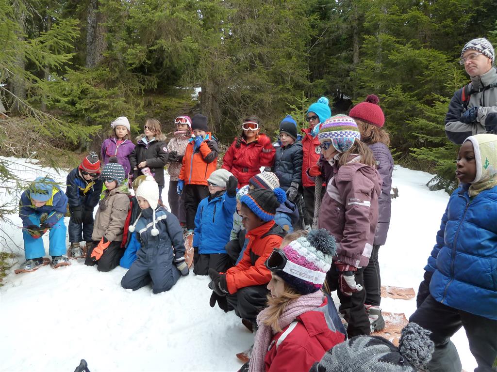 Avec la classe d'Olivier Drion, le jeudi 15 janvier, nous sommes allés à l'Arselle pour faire une sortie en raquette. Avec notre guide Johan, nous avons observé des traces d'animaux : écureuil, renard et lièvre.