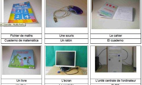 - Chaque élève a pris "son" objet en photo puis a intégré sa photo au document sur ordinateur. La légende a été écrite au clavier en français et en espagnol.