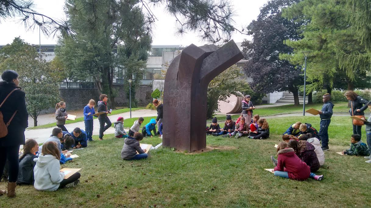 Lundi 10 octobre, journée mondiale contre la peine de mort, tous les élèves de CM2 de l’école, accompagnés de Montse, Salima et la maîtresse Marianne sont allés au parc du Musée de Grenoble pour observer la sculpture d’Eduardo Chillida, sculpteur espagnol.