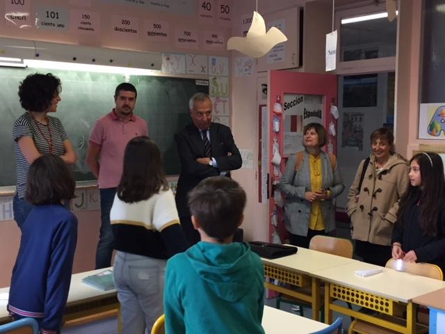 Dans le cadre de la célébration des 30 ans de la section espagnole de la Cité scolaire internationale d'Europole, Monsieur PUIG DE LA BELLACASA AGUIRRE, conseiller pour l'éducation à l'ambassade d'Espagne en France, est venu visiter la section internationale de l'école. Il était accompagné de Mesdames VERNET et MANIN, toutes deux inspectrices de l'éducation nationale à Grenoble.