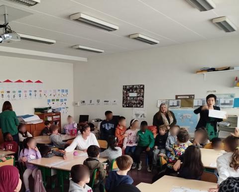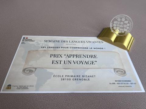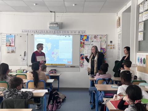 Deux inspectrices académiques des langues, espagnol et anglais, étaient présentes à l'école pour nous remettre un prix afin de célébrer notre cartographie des langues que nous avons pu présenter enrichie aux élèves de l'école.